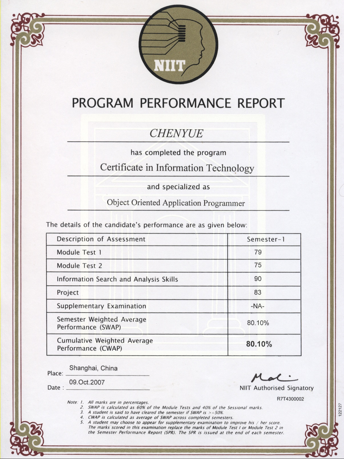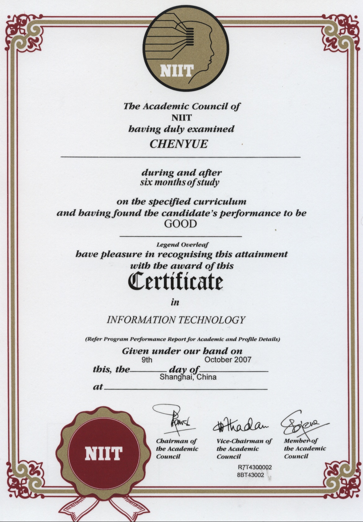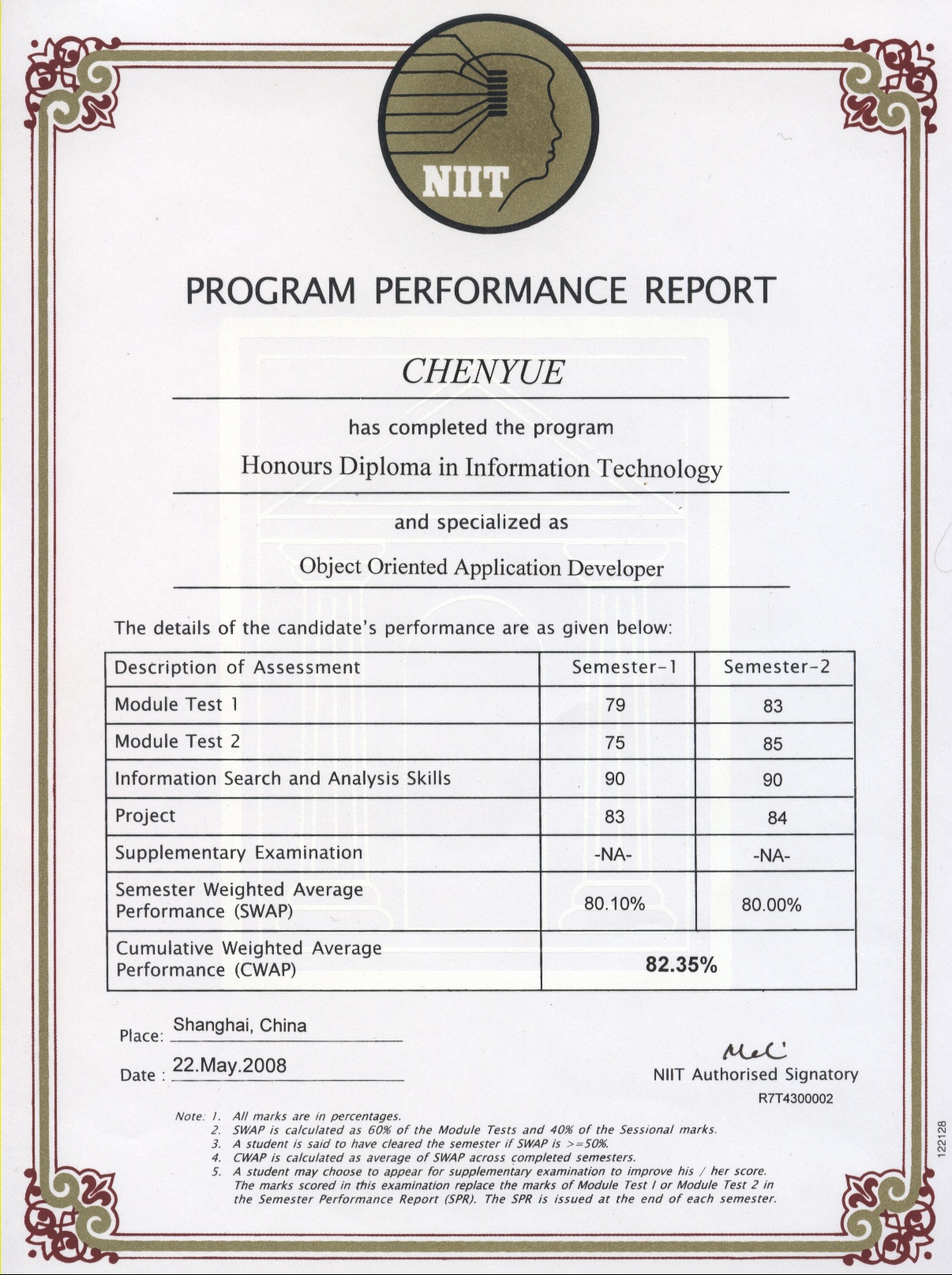 出生年月:1988.6 学位:印度NIIT软件开发工程师 |